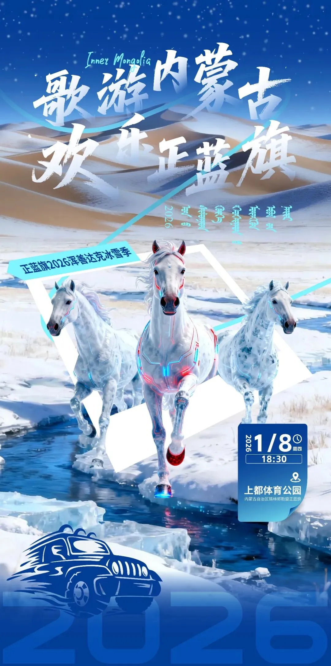 为丰富广大群众精神文化生活,充分激发正蓝旗冰雪经济活力,1月8日(星期四)18:30,在正蓝旗上都体育公园,特举办“歌游内蒙古 欢乐正蓝旗”2026年浑善达克冰雪季嘉年华活动。现诚邀广大居民、游客前来参加,共赴冰雪盛宴。