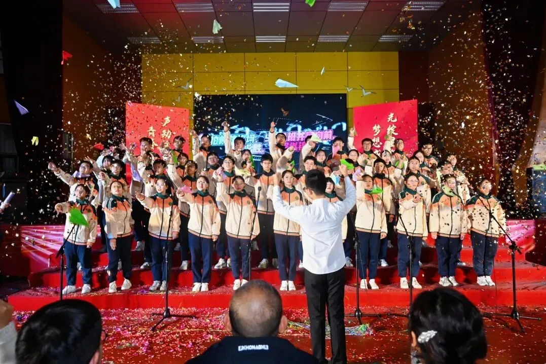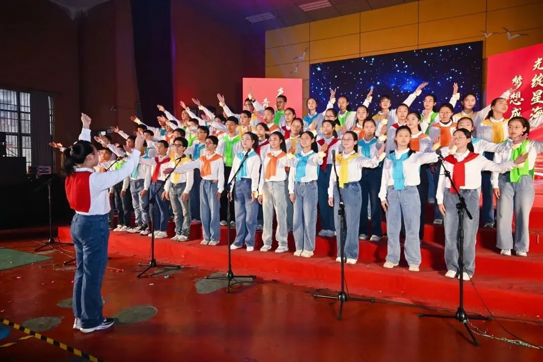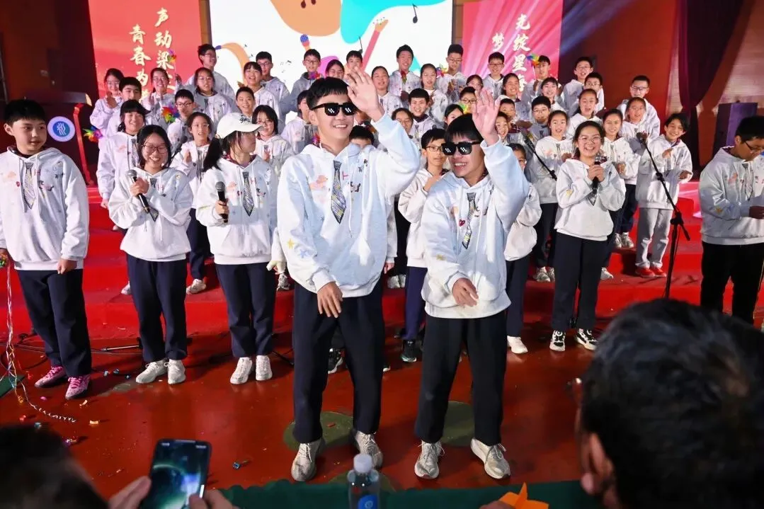 歌声如风,吹过这个闪亮的舞台——我们在《起风了》的回望与《最炫民族风》的热烈中起舞,也在《平凡之路》的低吟里,触摸前行的真实,而《我相信》的呐喊依旧滚烫。所有歌声终将汇成你们心中的力量——愿你们把这份闪耀与坚定带进课堂,在学习的路上继续奔跑,做自己的追光少年。