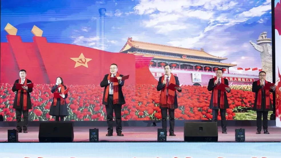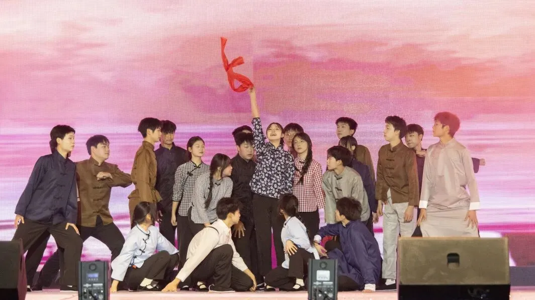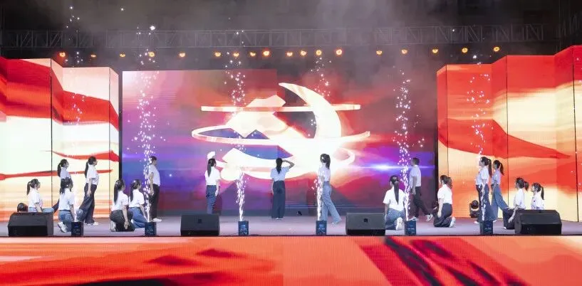 当全场倒数归零,灯光如星河倾泻,舞台中央,鲜红的旗帜随音乐飘扬。一曲《唱支山歌给党听》翩然起舞,青春的脚步踏出信仰的节拍,也为今晚的盛宴拉开艺术的序幕。