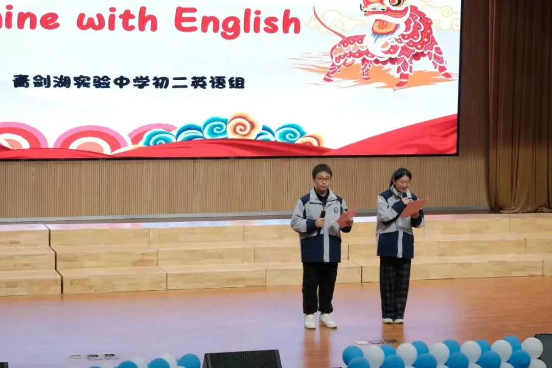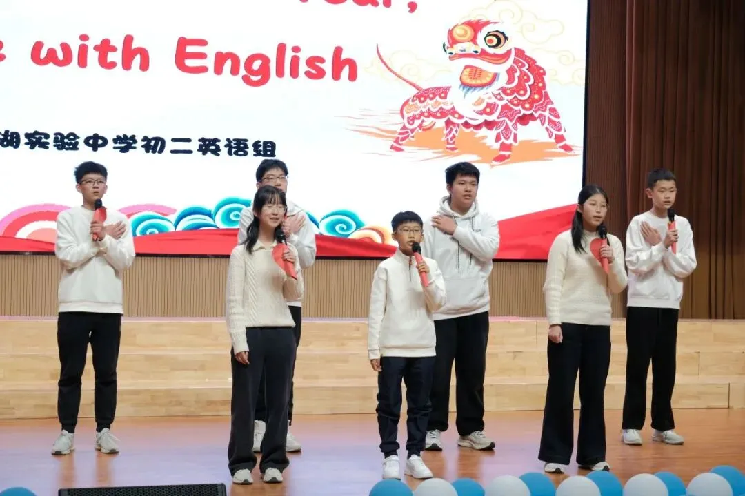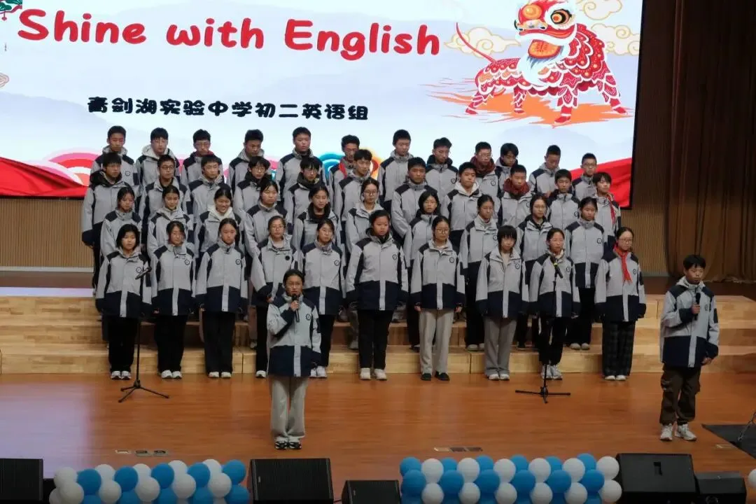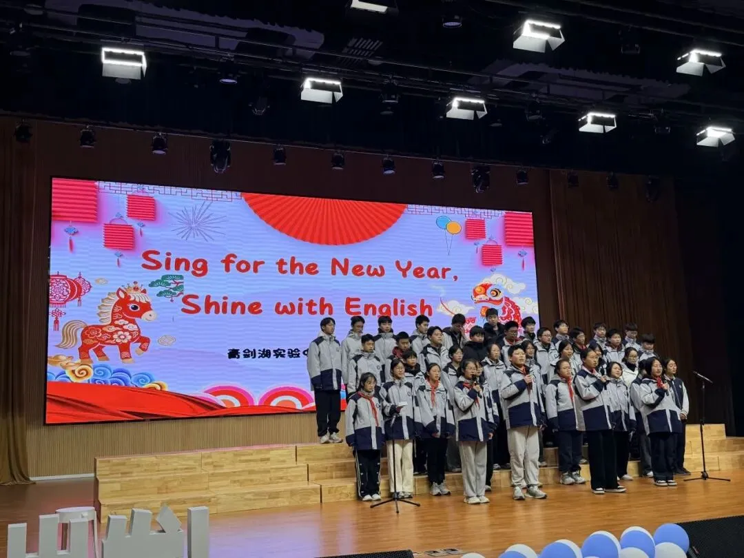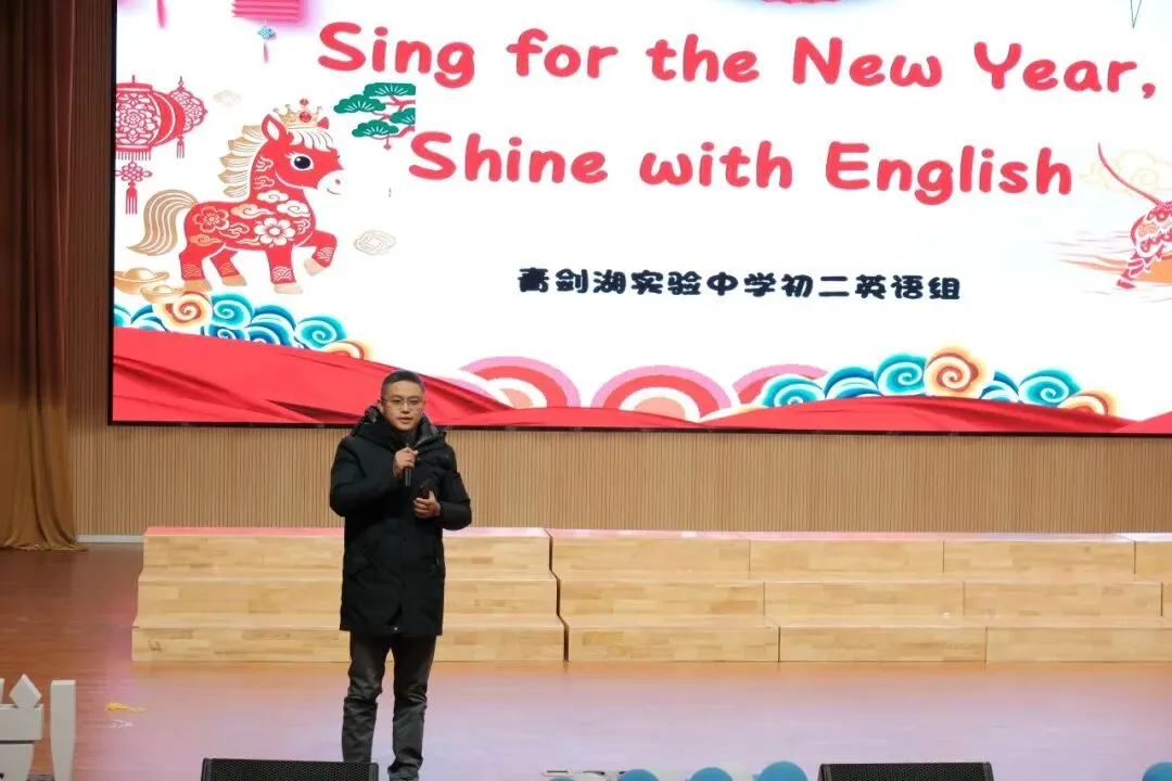 2026年1月5日下午,青剑湖实验中学“Sing for the New Year, Shine with English”英语演唱比赛在报告厅热烈举行。翟任重书记、孙婵娴校长、何积培副校长、施展副校长等校领导与初二年级师生欢聚一堂,在旋律飞扬中唱响热爱,共赴新程。