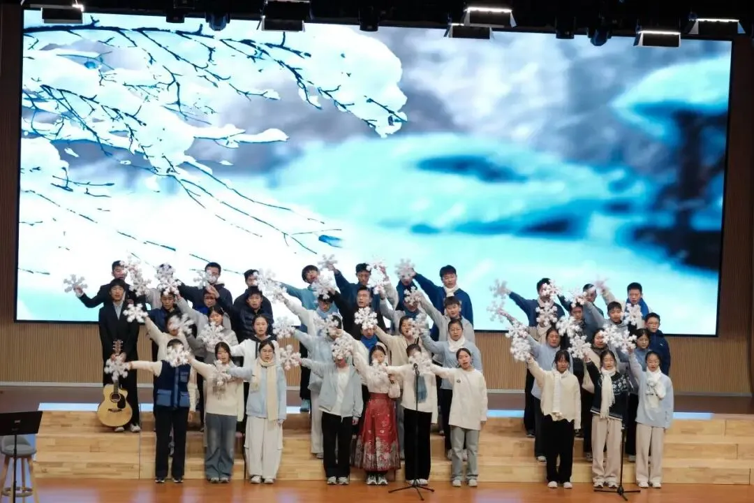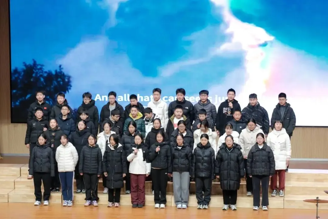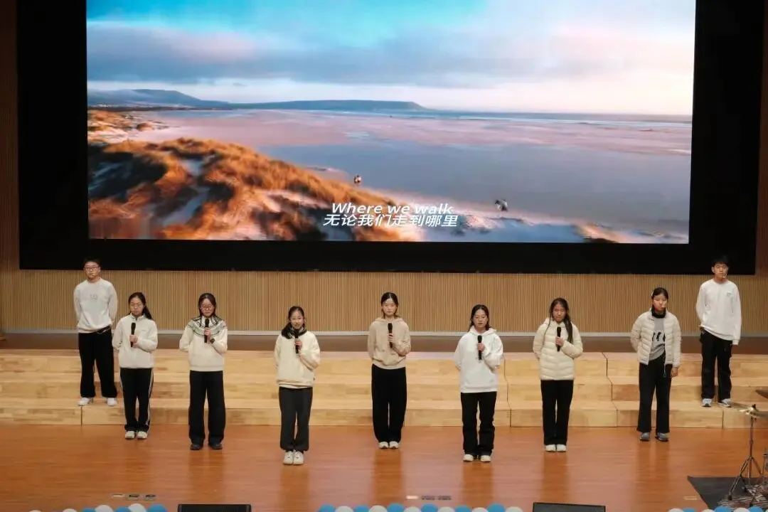 《Take Me Hand》的旋律响起,初二(13)班用温暖交织的声线,为现场营造出一个梦幻而治愈的空间。