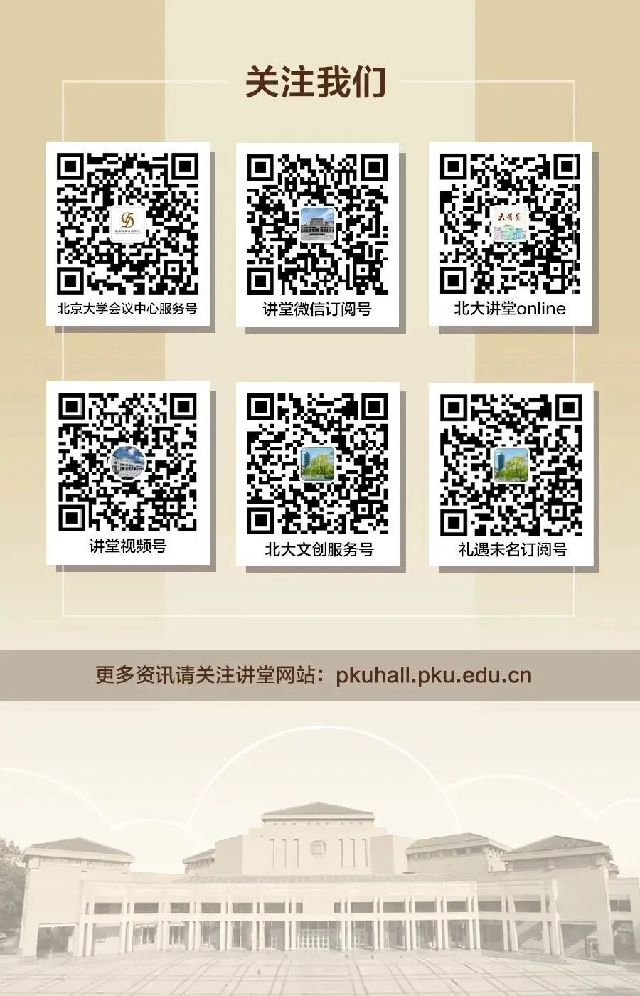 1.校外观众请于活动开始前1小时从北京大学东南门(地铁四号线北京大学东门站D口向南)进入,凭有效身份证件完成人证核验,并配合安检措施后入校。活动结束后,请按照指引及时离开校园。