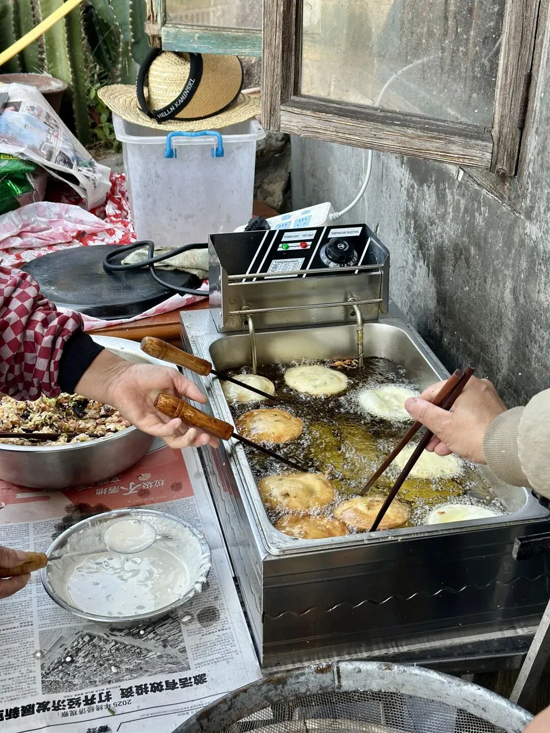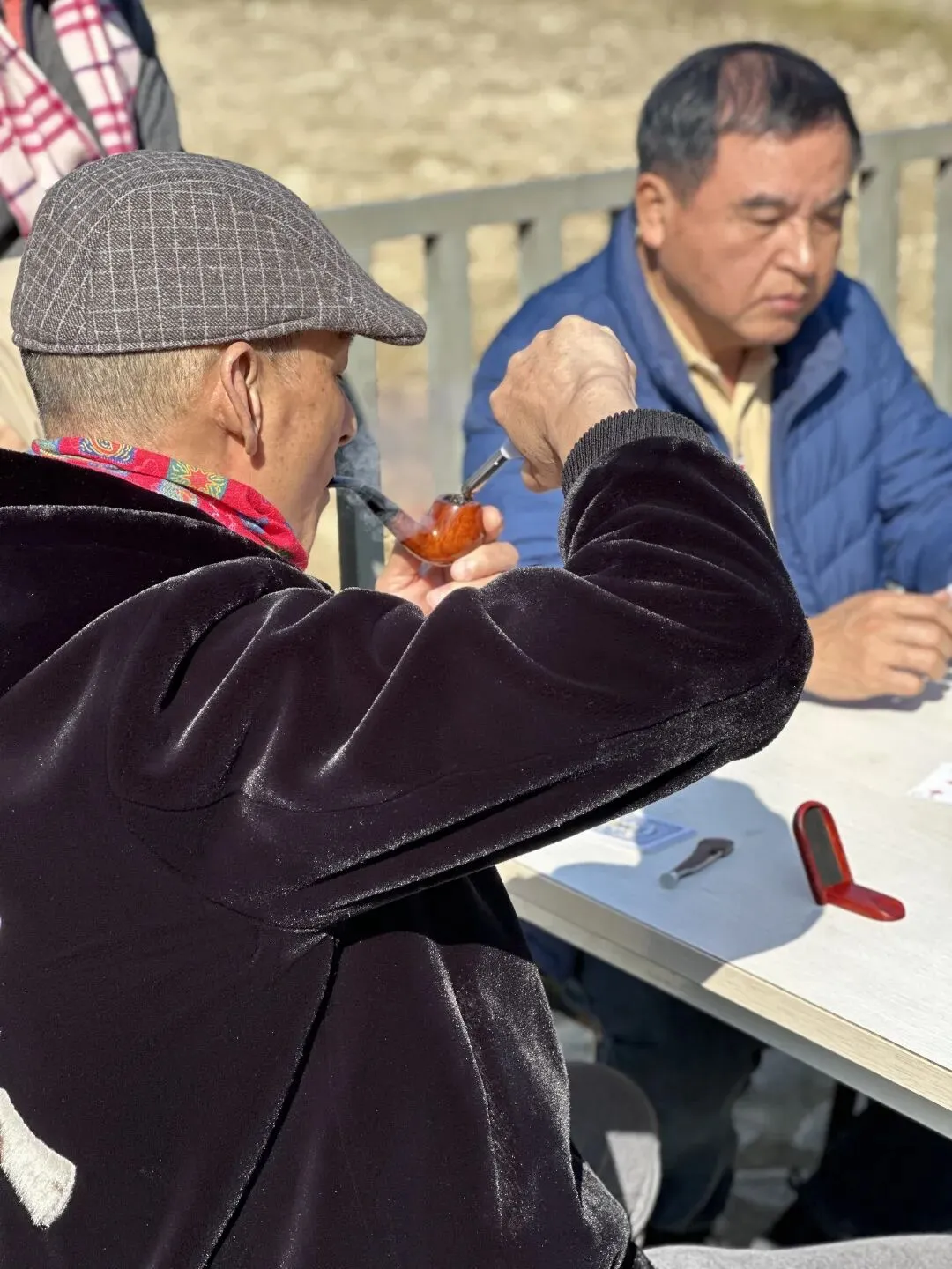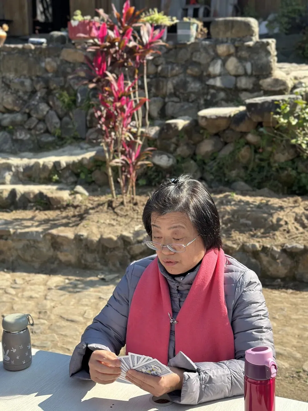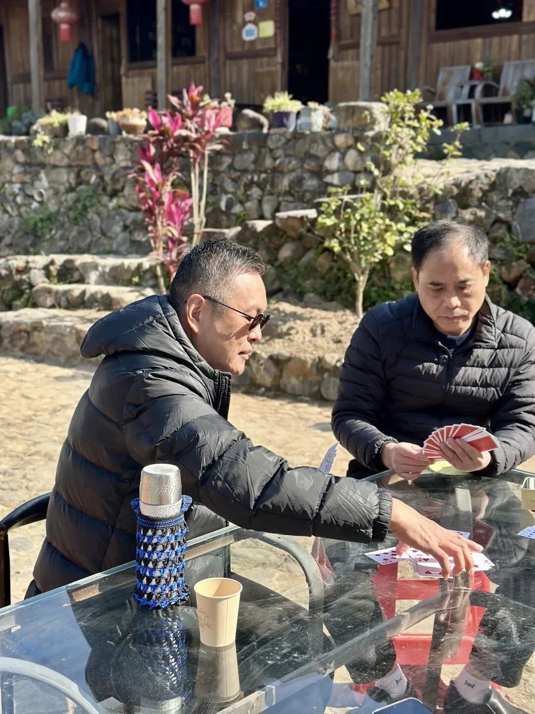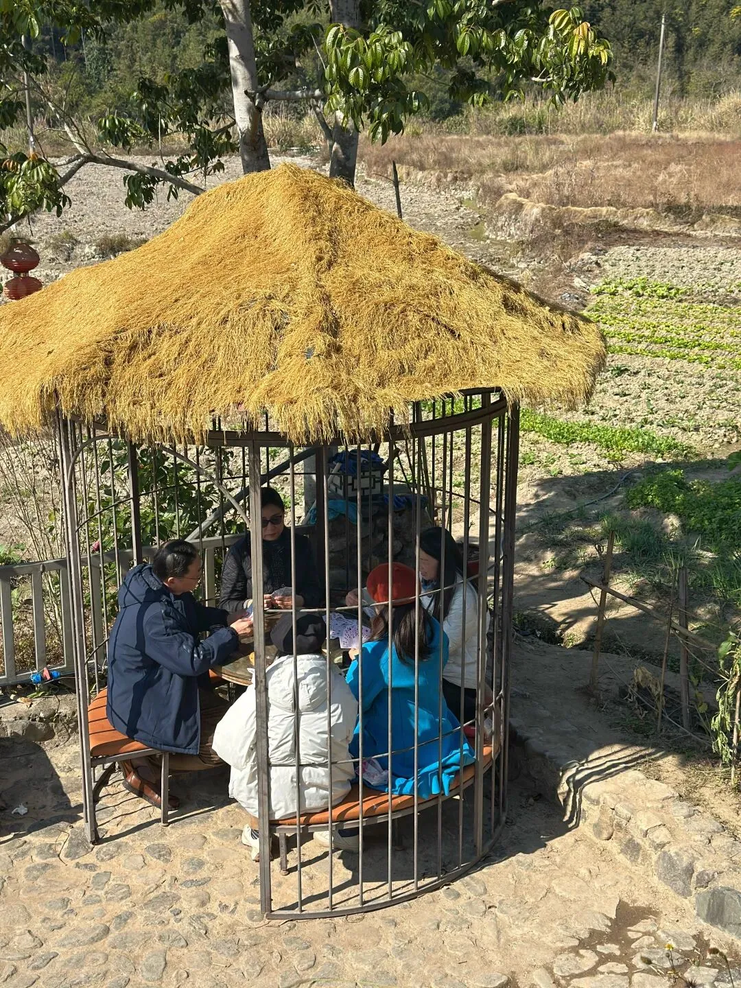 冬日的福州白沙井下村,阳光和煦得恰到好处。在黄兆丹同学的精心引荐下,我们福州三中81、82届的部分老友,在这片田园山野里重逢了。青石垒砌的院落、古朴的木质小楼,成了这场聚会的天然背景。老友中不乏“老法师”,大家纷纷举起相机、手机,将光影穿透枝叶的斑驳、石墙木楼的韵味一一定格。漫步村道,大家聊起三中的求学时光,那些青涩的往事仿佛就在昨日。难得露面的王小梅同学笑语盈盈,亲切和老同学打着招呼;有的同学插科打诨,惹得笑声传遍了田野。散步途中,我们偶遇了正在阳光下锻炼的智障儿童。那一刻,大家不约而同地放慢了脚步。看着孩子们努力的样子,我们不仅感受到了冬日的物理温暖,更触碰到了社会对弱势群体那份沉甸甸的关爱。这份人间温情,让我们的聚会多了一层生命的厚度。散步归来,院落里瞬间沸腾——三桌掼蛋同时对垒,这大概是当下最讲究的“智力体操”了。青石桌旁,两位“牌坛高手”成了焦点:“掼蛋大师”王小梅: 眼神专注,整理牌路有条不紊,那份从容范儿,真有几分运筹帷幄的定力。“专业教练”陈光辉: 一边从容出牌,一边化身导师,给身边的“入门徒弟”复盘教学,俨然一副专业教练的派头。江湖传闻,这两位大师强强联手,本想横扫全场,没曾想竟遭遇了“滑铁卢”,惨败给了一众“徒弟”!这一出“青出于蓝”的戏码,成了全场最大的焦点。一旁的波哥叼着烟斗,在烟雾缭绕间稳稳打出关键牌,清脆的甩牌声混着大家的起哄声,在晴空下回荡。牌技有高低,兴致无贵贱,这份互相打趣的真诚,才是同窗情最鲜活的模样。在井下村古朴的灶台边,我们找回了刻在福州人骨子里的味觉记忆:锅边糊: 现磨米浆绕锅一周,汤头鲜醇,这一口入喉,便是童年。油饼: 金黄酥脆,裹着柴火的焦香,咬下去咔嚓作响。农家菜: 刚从田头摘下的青翠,清甜爽口,洗净了都市的浮躁。王小梅和陈光辉也从牌桌上的“肃穆”切换到了“食客”模式,大家捧着碗、倚着木柱,在老房子的梁柱下笑着合影。乡土美味里,藏着化不开的乡愁,更藏着续不完的情谊