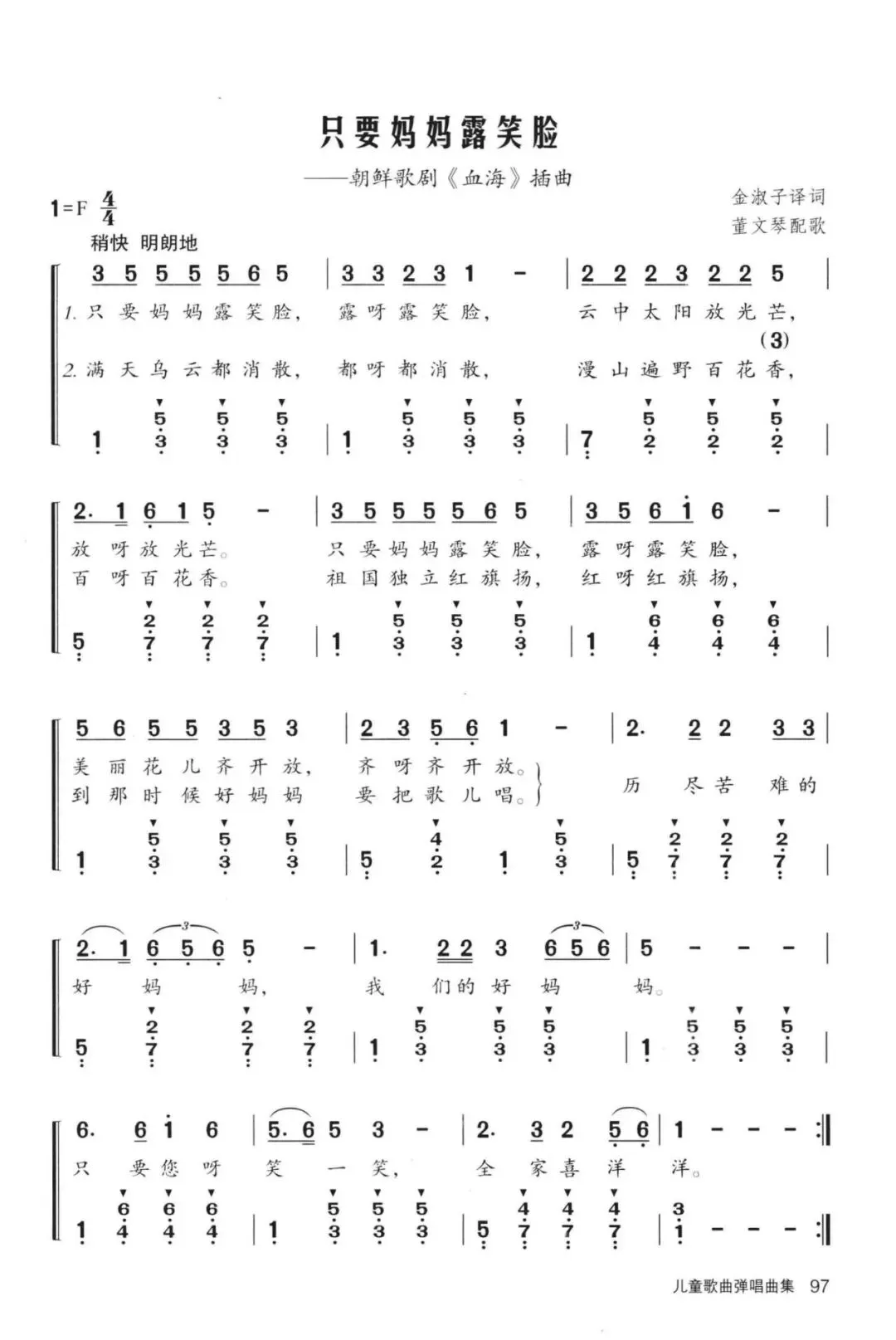 97.《只要妈妈露笑脸》 金淑子译词,董文琴配歌