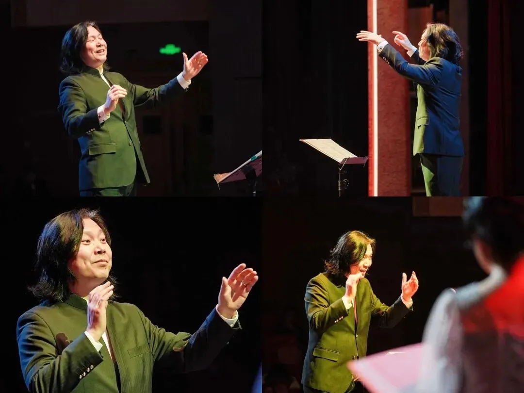 指挥王小明立于台前,双臂如翼,手掌开阖间,引万籁俱声,其身体律动与细微表情,俱成无声的号令,将数十歌者的气息、情绪与力量拧成一股。