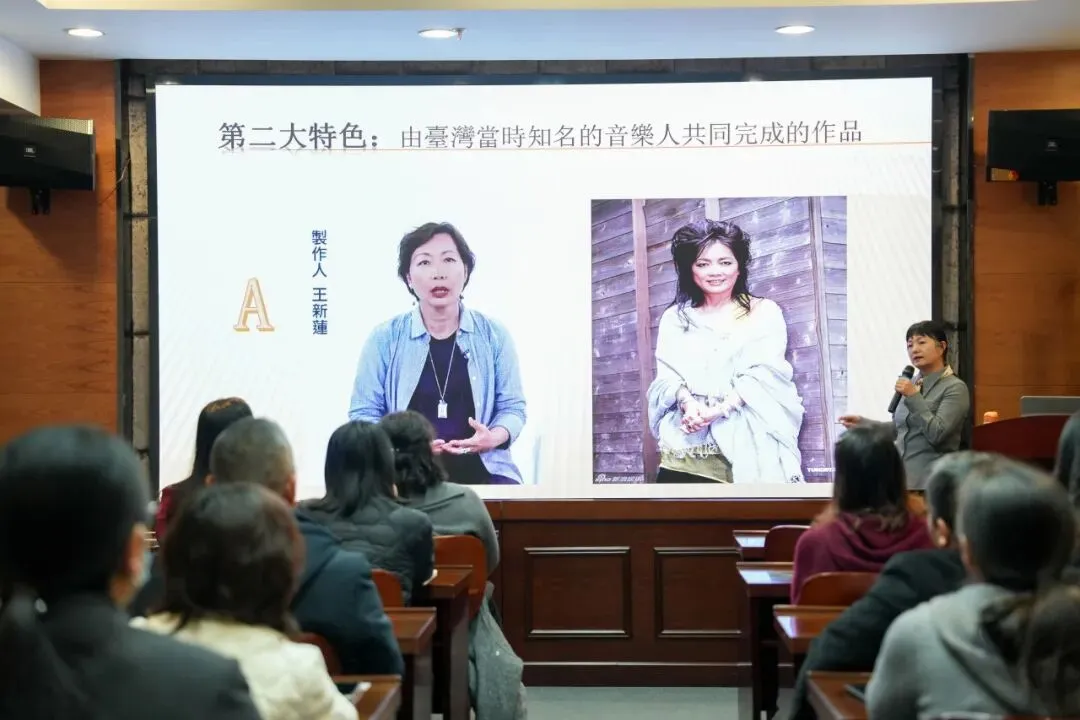 讲座开始,李舟静老师深入讲述了专辑《回声·三毛作品第十五号》的诞生历程。该作品凝聚了作家三毛的歌词创作,由齐豫与潘越云两位歌手共同诠释,并由音乐人李宗盛、李泰祥等参与作曲,堪称文学与音乐交融的典范。