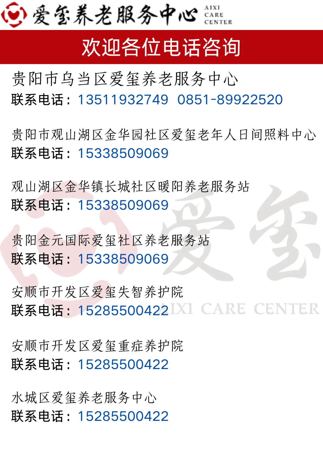 贵阳市乌当区爱玺养老服务中心是,系社会服务机构(民办非企业单位),中心共设置269张床位;目前在院老人152名;主要服务人群:自理、半自理、全护理、阿尔兹海默症、帕金森等老年群体。中心设护理部、医护部、社工部、文娱部、保洁部、餐饮部、前台接待部、后勤部和办公室等部门。