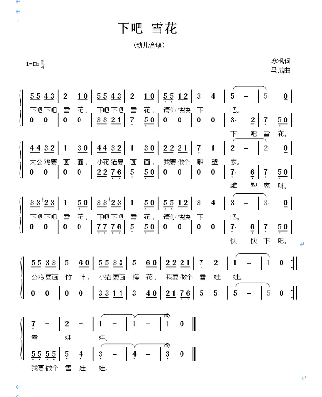 二、看看歌曲《下吧 雪花》乐谱