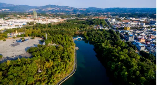大小两个水库及周边坡地、原始森林