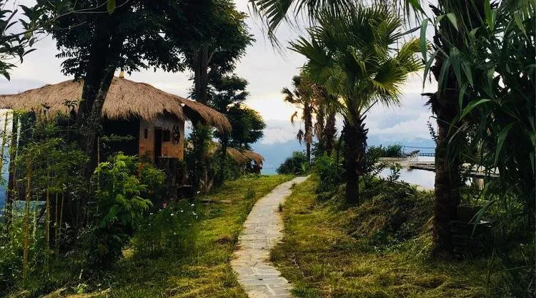 奘房后300米处的加孔草坡绿树环绕