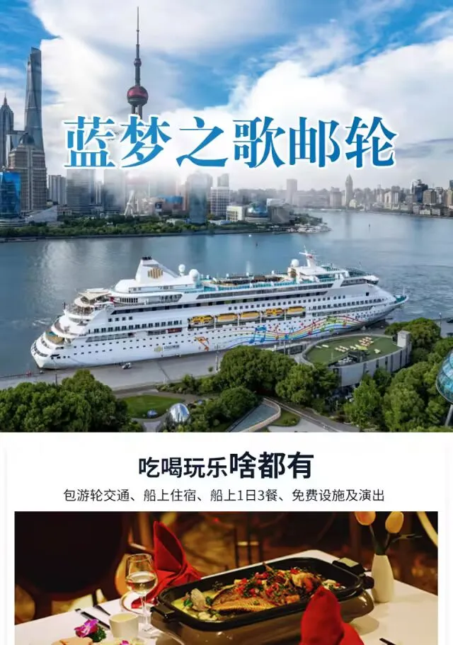蓝梦之歌是小邮轮,但该有的都有,两个自助餐厅,餐食种类也算丰富,味道一般;剧场演出和电影,甲板派对,各种活动也算丰富,适合度假躺平,主要价格合适,在节假日来说性价比很高。岸上观光选择贵的线路还是更好玩 !!玩得非常好~小田人很好服务到位,之后都经常保持联系,想去邮轮的朋友可以找她。因为平时工作忙,不能及时回复,你直接咨询小田吧,她人挺好的