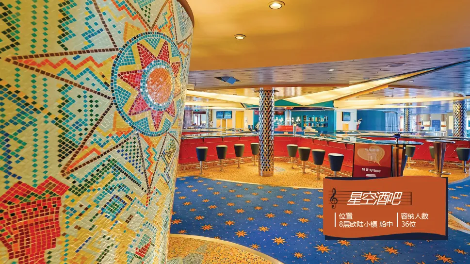 下午还可前往各活动区域参加丰富的邮轮活动,或欣赏一曲悠扬的钢琴弹奏,或聆听一首耳熟能详的乐队经典歌曲弹唱,此外还有歌曲竞猜、手工制作等等丰富多彩的互动活动等您参与其中,快来体验欢乐的邮轮海上巡游日。当夜幕降临,繁星点点布满天空,您可以在甲板上参加甲板动感派对,还有户外音乐会等您欣赏,也可前往大剧院欣赏主题歌舞秀,还有经典影片伴您度过一个轻松愉快的夜晚。(详情以当日邮轮日报公示为准!)