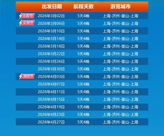 【蓝梦之歌号】 北京-上海-济州-釜山-上海-北京 九晚十天