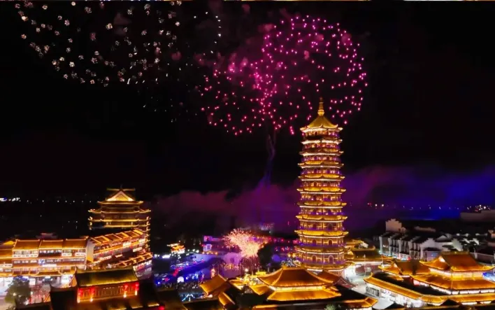 水舞秀堪称太湖古镇的一大招牌表演,绝对是你不容错过的视觉盛宴。演出时,1200多个喷头同时发力,300多台水泵协同运作,将水柱精准地喷射向空中 ,配合 2000 多盏水下灯散发出的绚丽光芒,以及 12 套音响播放出的激昂音乐,声、光、水完美融合,三位一体,打造出如梦似幻的场景。同时还有打铁花、火壶、船艺、古镇街艺国潮秀,水面烟花等,为太湖古镇增添了不少乐趣。