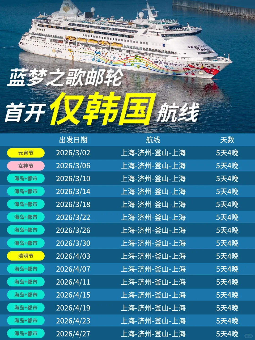 🚢🚢『重磅盛启~畅游天地』🎉→🌙邮轮狂欢季!✨[海上金曲^爱在蓝梦]🌏,跟着快乐出发⭐,轻歌曼舞超精彩!👏🌈玩转韩国济州岛、釜山。