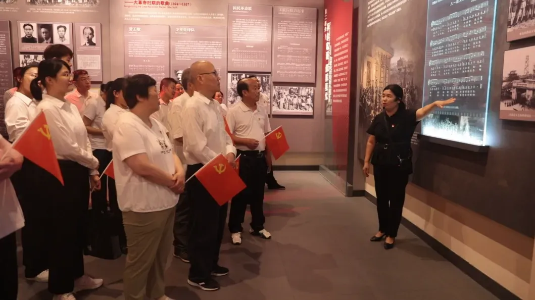为让讲解既有温度又有深度,她一头扎进史料堆——翻党史文献、查歌曲创作背景,对着乐谱逐句练唱革命歌曲,哪怕一个音符的情感表达,都要反复琢磨。耗时两个月,她终于打磨出独具特色的专属讲解词——既有历史厚重感,又有音乐灵动性。在“人民的心声 历史的旋律”主题展中,她不会直陈列展,而是笑着向游客发出邀请:“同志们,当年的劳动号子就是这样为战士们加油鼓劲的,我们一起试试看,把这股劲儿唱出来!”随即,她便领着游客齐声高唱“千家万户哎嗨哎嗨呦,把门开哎嗨哎嗨呦……”歌声落定,展厅里总会爆发出热烈的掌声。一位游客由衷感叹:“太震撼了!光是听讲解,可能记忆不深刻,但这样亲口唱过歌,艰苦奋斗的历史一下子就‘活’了起来,感受很深刻!”