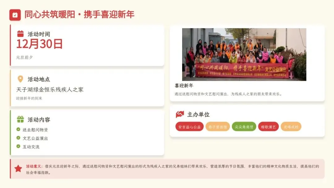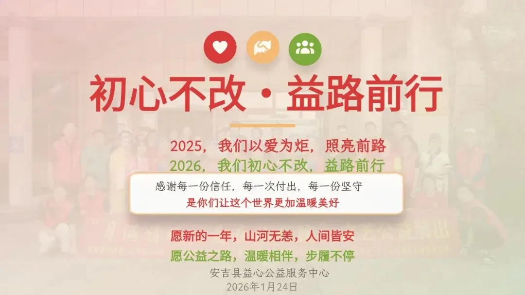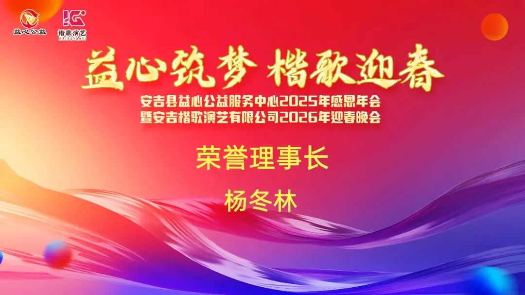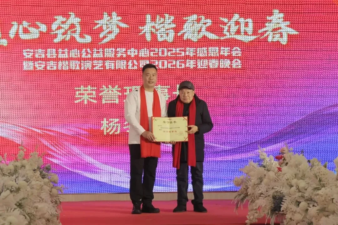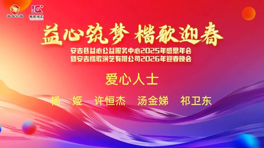 时光荏苒,岁末将至。当街灯缀满红绸,当空气弥漫年味,1月24日晚上“益心筑梦,楷歌迎春”安吉县益心公益服务中心2025感恩年会暨安吉楷歌演艺有限公司2026年迎春晚会在遇花园宴会中心圆梦落幕。