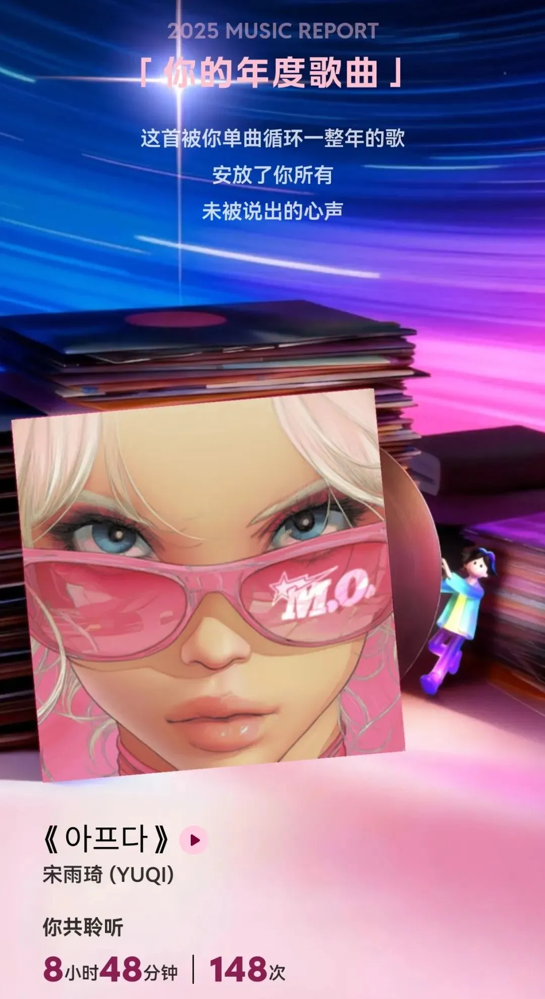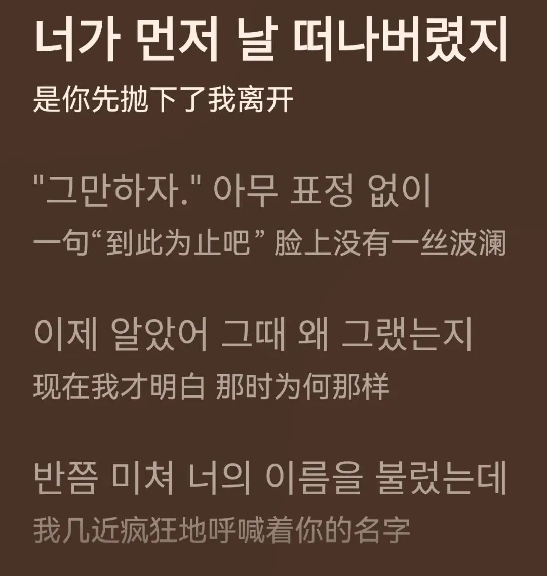 阿普达毋庸置疑的第一名!mv释出后把这个伤痛小影片看了无数遍,宋雨琦不管什么风格都可以驾驭啊。因为一开始听的是韩语版,结果反而中文版听不习惯了哈哈。