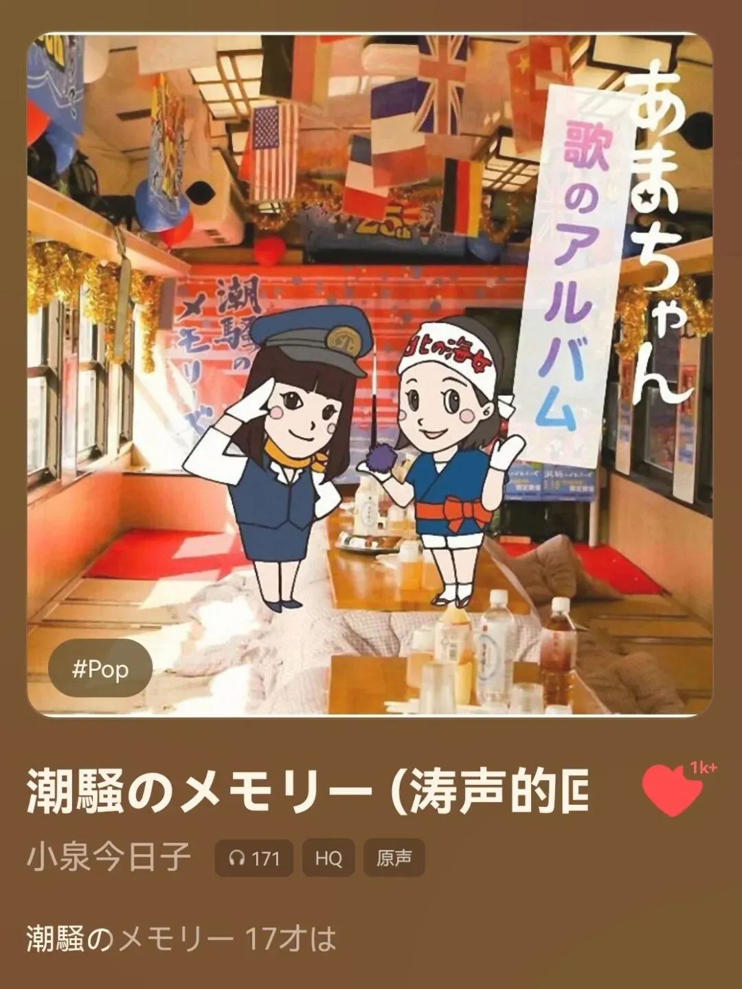 其实这两句歌词来自《海女》里药师丸博子饰演的铃鹿广美改编后的追忆如潮,我太喜欢这两句的改编了,特别符合《海女》!海女アキ和北铁小姐ユイ的追忆如潮组合最高!暑假听到了non演唱的现场版追忆如潮,每每想到都好幸福。