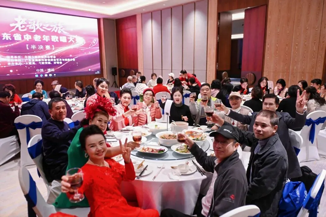 比赛结束后,大家移步晚宴围餐。圆桌之上,热气腾腾的佳肴与欢声笑语相伴。此刻的相聚,不只是味蕾的享受,更是心与心的贴近——我们因歌结缘,因情相连。