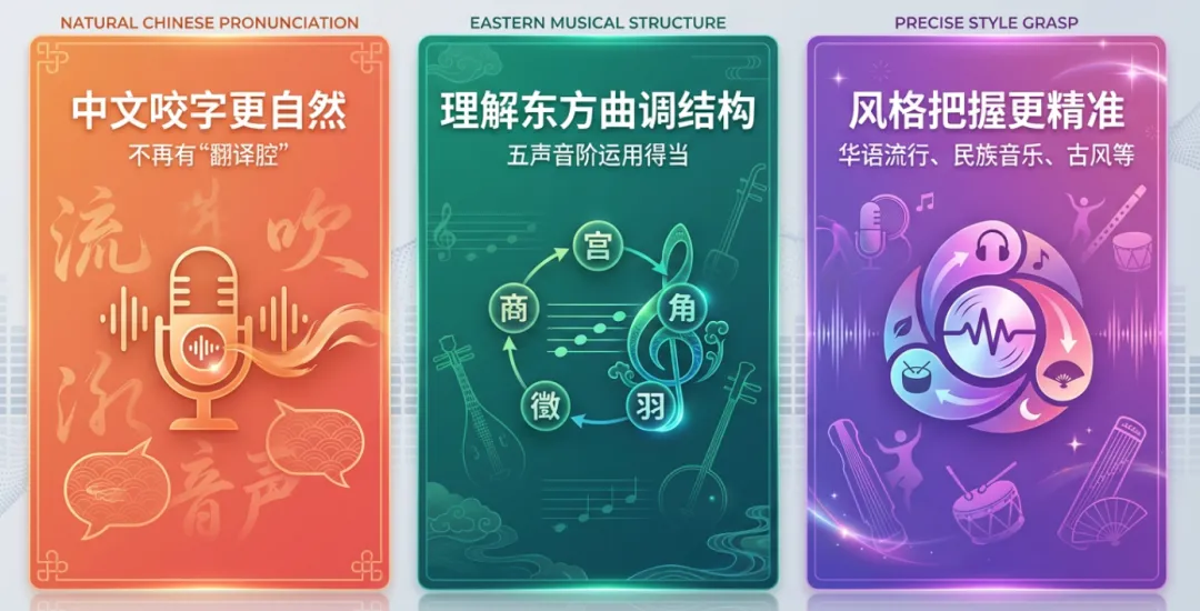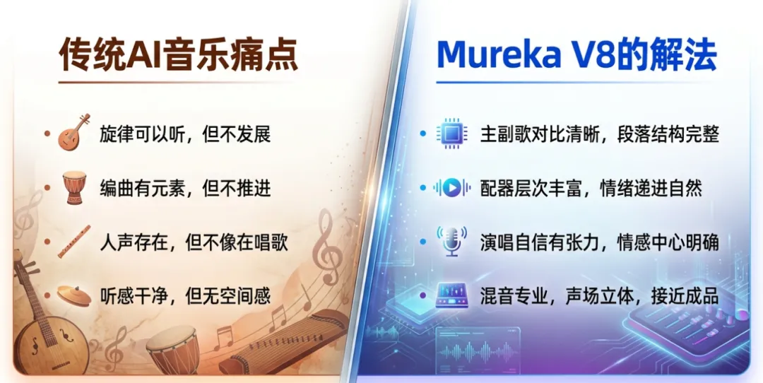 相比海外竞品,Mureka V8在中文语境与东方音乐审美上具有天然优势: