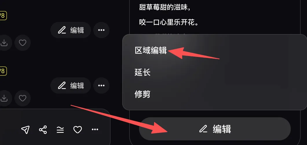 点击区域编辑之后,就可以针对特定的部分做进一步修改。
