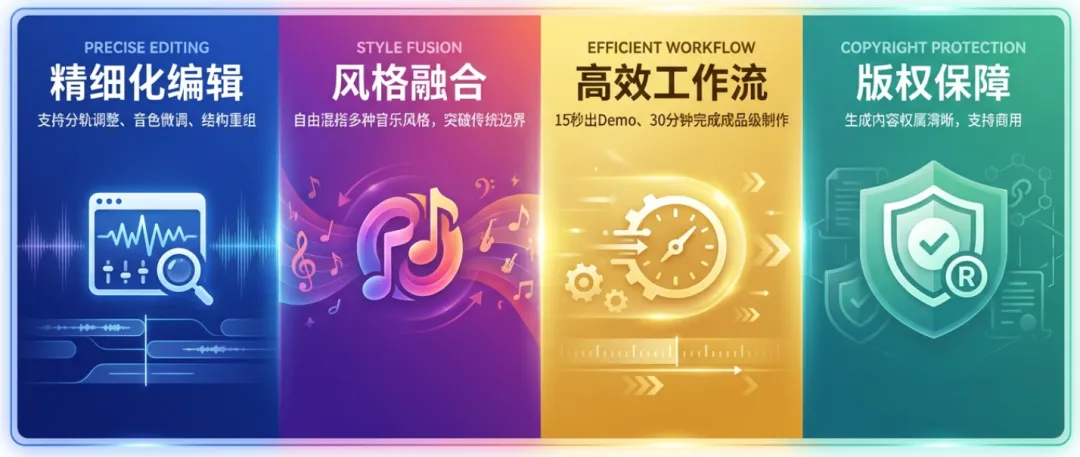 对于专业音乐人,V8不是取代,而是赋能。它可以快速验证创意灵感、提供多元风格参考、打破创作瓶颈。人+AI协同,将成为未来音乐创作的新范式。