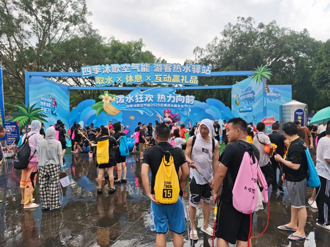 在云南泼水嘉年华,我们创新性地将空气能技术与泼水节场景结合,以38℃恒温热水重新定义传统泼水体验,让大家可切身参与到场景中,将四季沐歌的专业技术转化为大众可感知的温度体验。