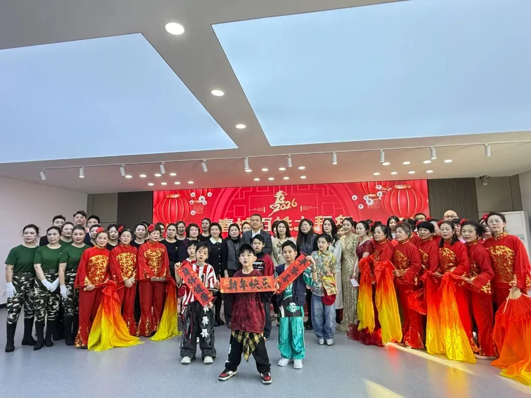 联欢会在主持人热情洋溢的开场白中正式拉开帷幕。向阳花艺术团带来的开场舞蹈《欢聚一堂》,以动感的节奏、欢快的舞姿瞬间点燃全场热情,为活动奠定了喜庆祥和的基调。随后,精彩纷呈的节目轮番上演:心弦鼓动非洲鼓艺术团演绎的《当那一天来临》,激昂的鼓点铿锵有力,展现出团结奋进的精神风貌;社区工作者带来的真情对唱《如愿》,歌声温情脉脉,传递出对生活的美好期许;恒安社区军嫂艺术团的舞蹈《绿色军衣》,飒爽的舞姿饱含着对军人的崇敬与深情,赢得现场阵阵掌声;华阳社区公益岗工作人员带来的诗朗诵《蹄踏春风 奔涌新程》,字字句句凝聚着对社区事业的热爱与担当;阳光明媚模舞艺术团的模特表演《天地龙鳞》,以典雅的韵味展现东方之美,让人眼前一亮;华阳社区社工岗带来的三句半《社区赞歌》,幽默风趣、贴近生活,引得现场笑声不断;最后,UP 街舞工作室小朋友们演绎的街舞《大闹天宫》活力四射,为联欢会画上圆满句号。