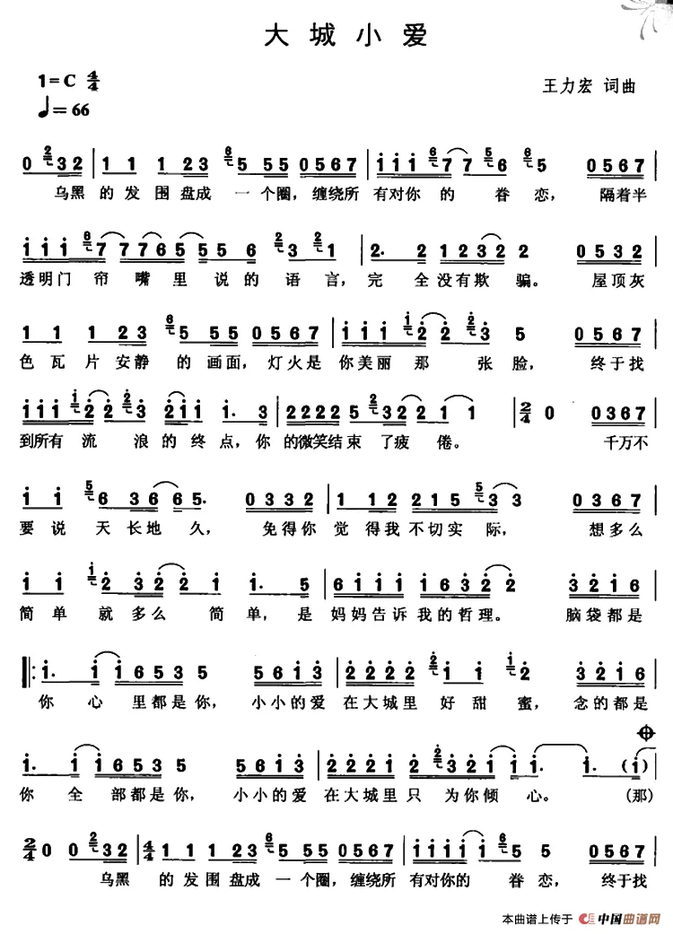 王力宏《大城小爱》歌曲简谱