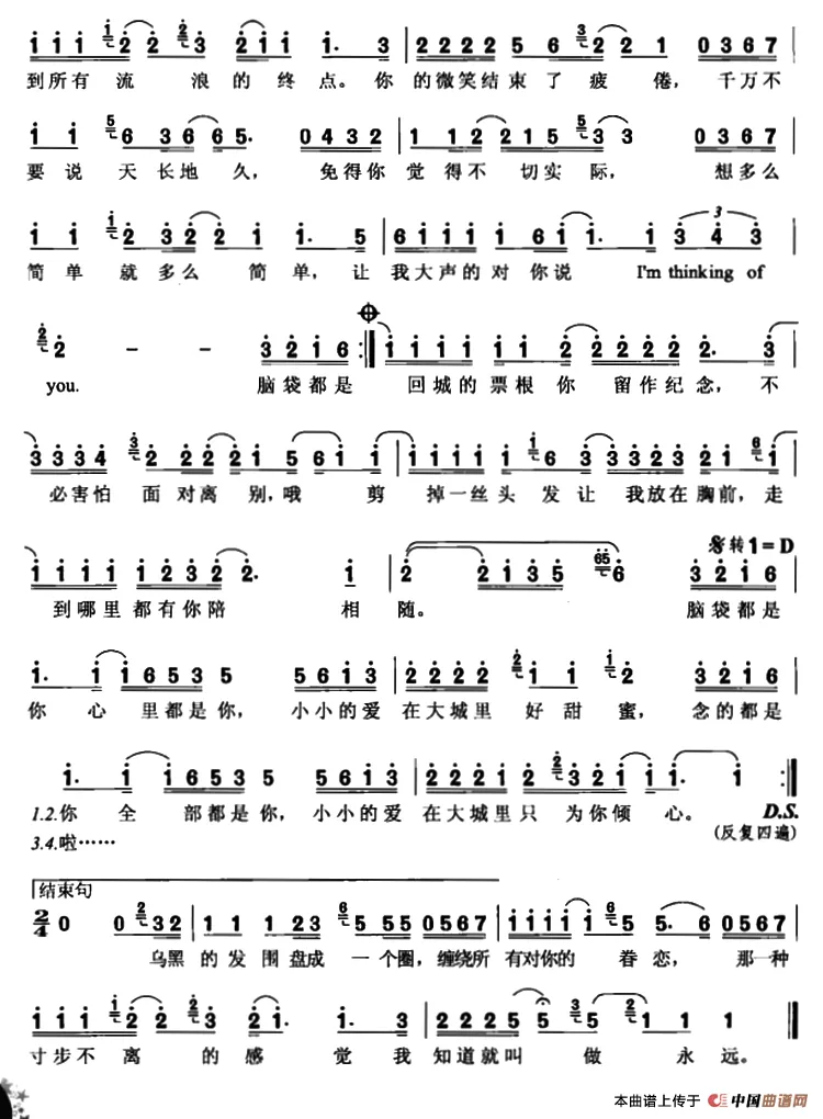 小小的爱在大城里只为你倾心
