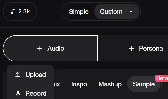 点击:在Custom下点击 upload上传歌曲,然后选择一段长度,可以是几秒钟也可以是几分钟。