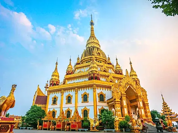 最后前往瑞丽傣王宫【总佛寺】,在瑞丽总佛寺追一场日落,直接解锁“佛揽金乌”的神仙奇观,彩虹阶梯通向维罕大殿,朱红描金的廊柱映着余晖,风吹过廊柱的声响,都像佛前温柔的低语。