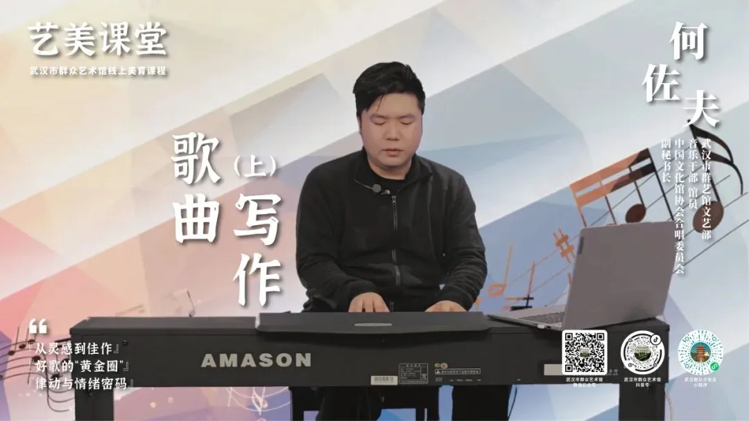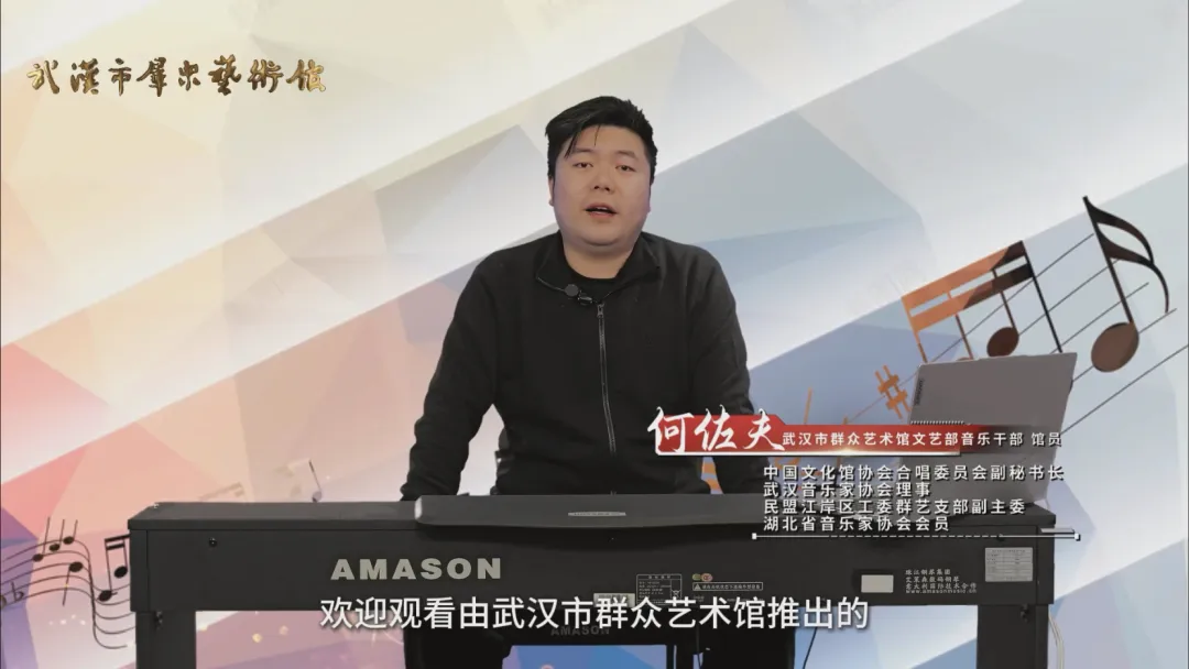 本期“艺美课堂”,邀请到武汉市群众艺术馆文艺部音乐干部、馆员,中国文化馆协会合唱委员会副秘书长,第五届武汉音乐家协会理事,民盟江岸区工委群艺支部副主委,湖北省音乐家协会会员何佐夫担任主讲。