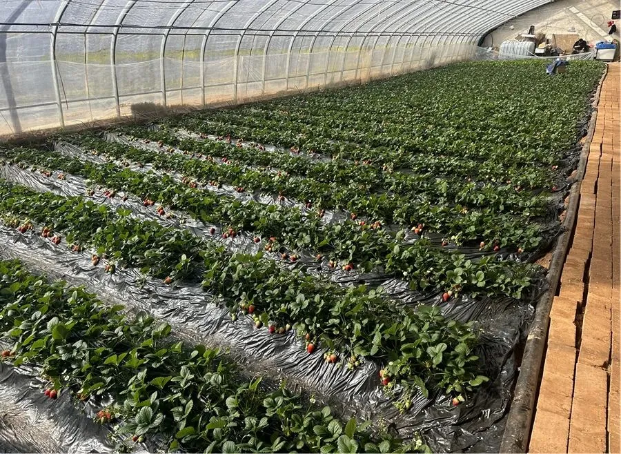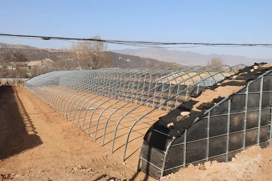 走进建设现场,焊花飞溅,机械轰鸣,村民与施工人员各司其职、协同发力,35座大棚已初具规模,半数棚体完成升级改造,未完工棚体的钢架整齐排列、错落有致,施工人员正有条不紊地调试自动卷帘机、铺设滴灌管网。
