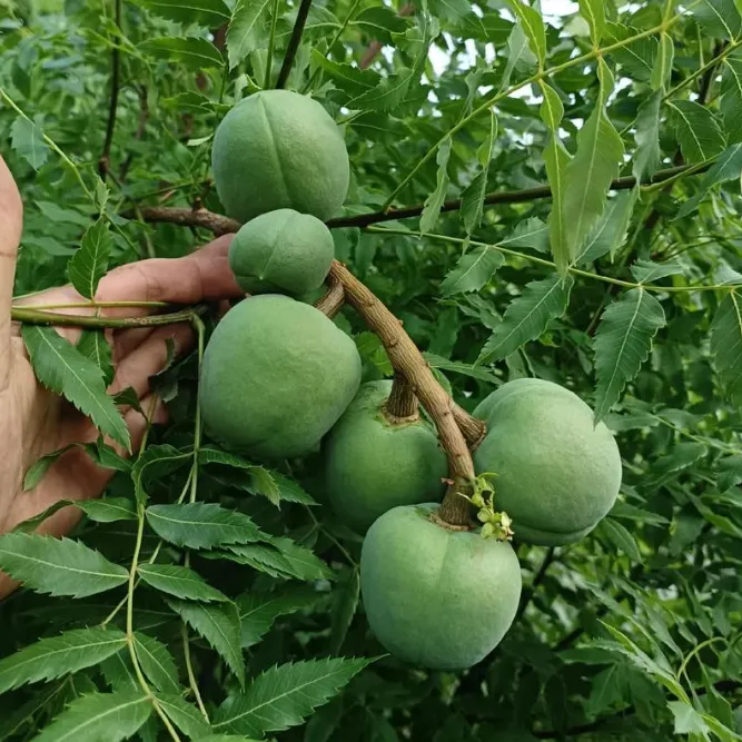 第二天,古树专家董教授跟着老人进了村。在一户农家院里,一棵碗口粗的树静静立在墙边,枝叶舒展,果实如小馒头般悬在枝头。