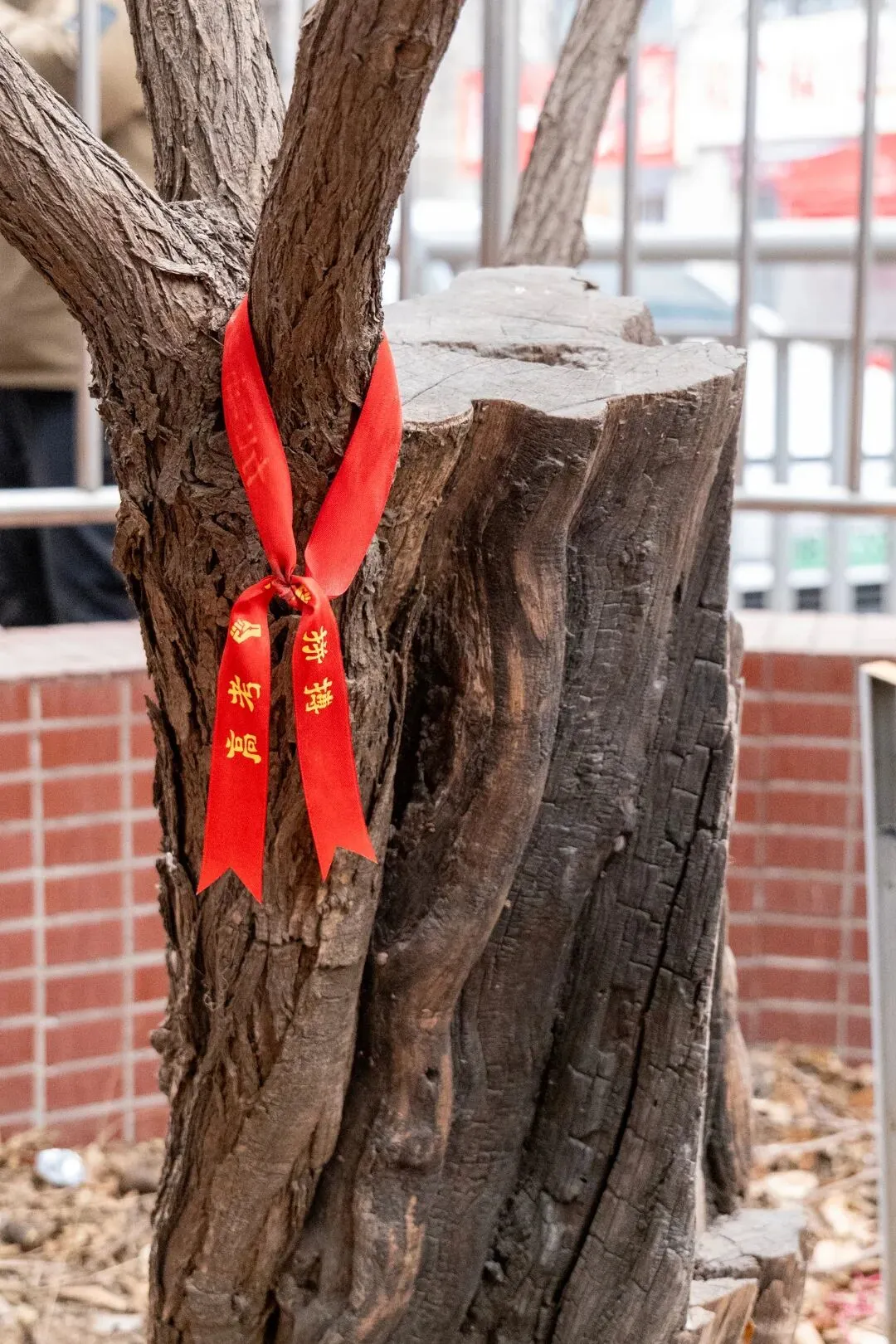 不法分子偷走了这棵文冠树的上半部分。这棵树本就生长在院子里,离房屋很近,生长环境十分艰苦,当时仅有十公分的树皮存活,经此一劫,大家都认为它活不下来了。