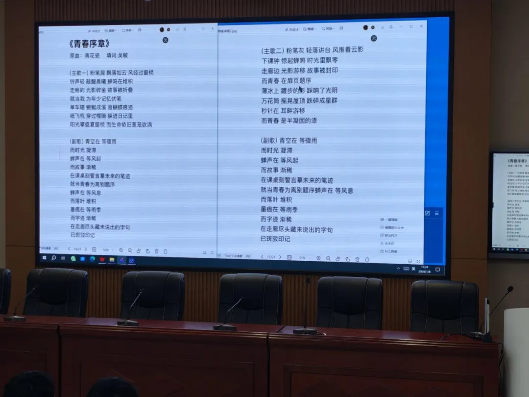 活动自12月初启动以来,吸引了高一、高二年级众多文学与音乐爱好者的积极参与,涌现出一批兼具文学美感与旋律契合度的优秀原创歌词作品。参赛者在提交填词作品的同时,也提供了由AI生成的歌曲演唱版本,使文字在旋律中“活”了起来。这些作品题材丰富、情感真挚,既有对青春成长的细腻书写,也有对往昔回忆的深情怀念,充分展现了同学们的创作才华与文学素养。