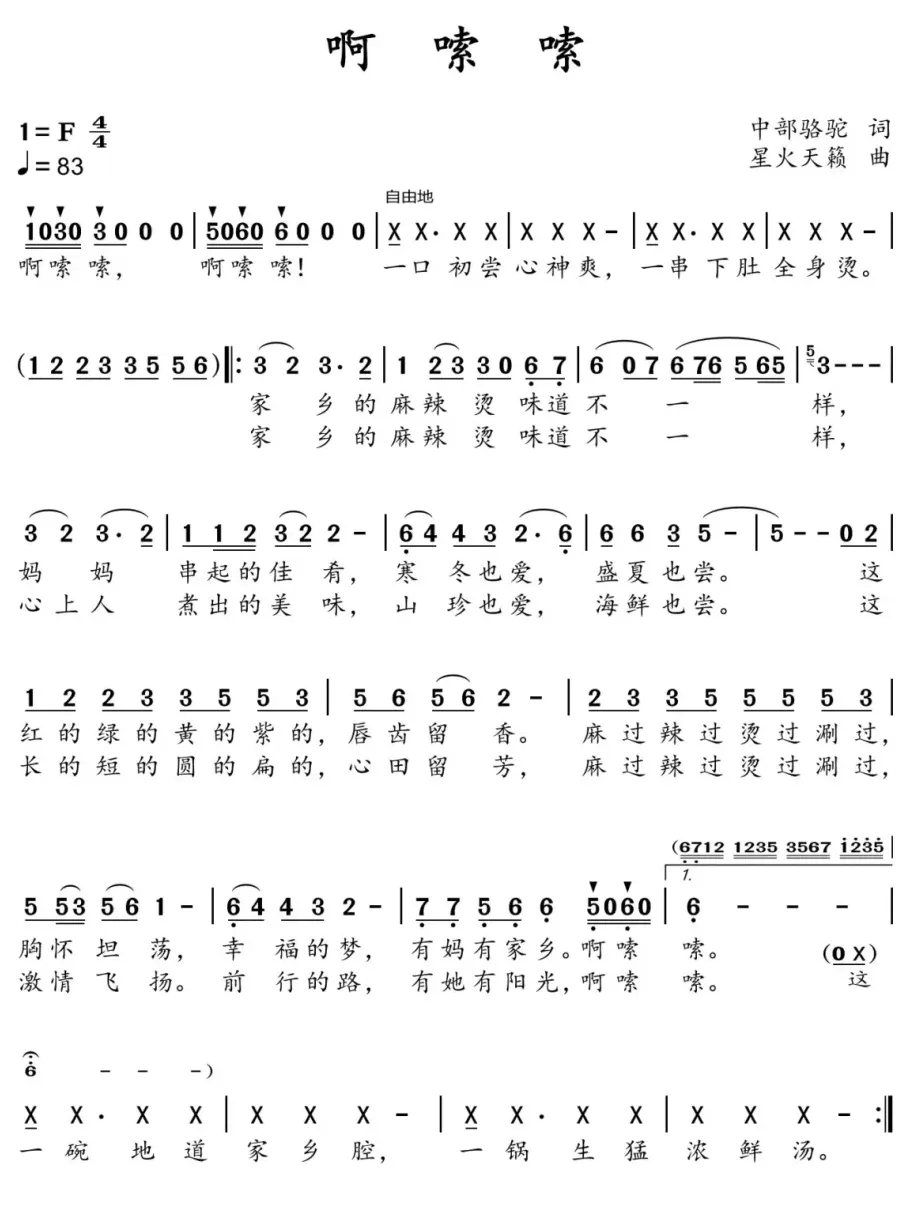 歌曲以湖南省益阳市地方特色美食“麻辣烫”为载体,通过对颜色、形状、食用方式的描写,用母亲“串”和心上人“煮”为情感纽带,抒发远方游子对家乡的思念和对生活的热爱,感受那份浓浓的乡愁。因食用后唇齿间又麻又辣又烫,出现麻酥酥、火辣辣、滚烫烫的感觉,食客不禁发出啊、嗦的声响,舒爽过瘾,故用拟声词“啊嗦嗦”作为标题,并在歌词中贯穿始终,更加形象生动。