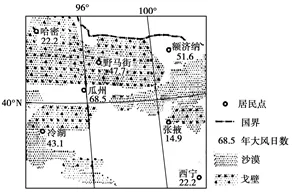 (2)有风:风能资源丰富(有“世界风库”之称),年大风日数多(近70天)。有地:可供建设风电场的土地广阔(充足)或戈壁(难利用土地)广布,地形平坦。(3)当地(经济落后,人口稀少)电能需求少;离东部(用户)较远(需长距离输电);当地基础设施(如电网等)不足;建设成本高(投资大),当地资金不足。