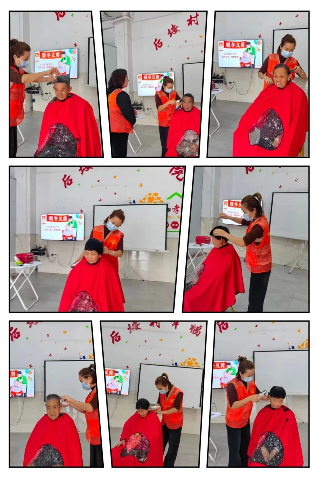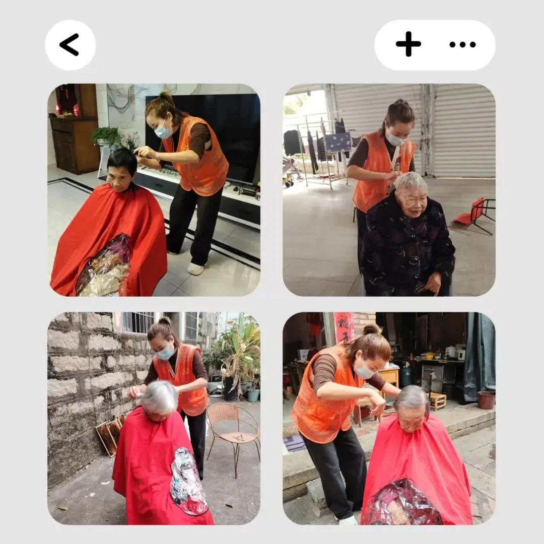 对于行动不便的高龄长者,还提供上门理发服务,让长者们足不出户就能享受贴心服务。剪完头发的长长者们精神焕发,脸上洋溢着满意的笑容。