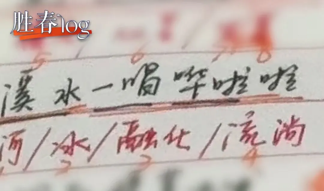 第一步,他们把较复杂的歌词拆解成一个个手语词汇,比如“溪水一唱哗啦啦”,就变成了“河”“冰”“融化”“流淌”。
