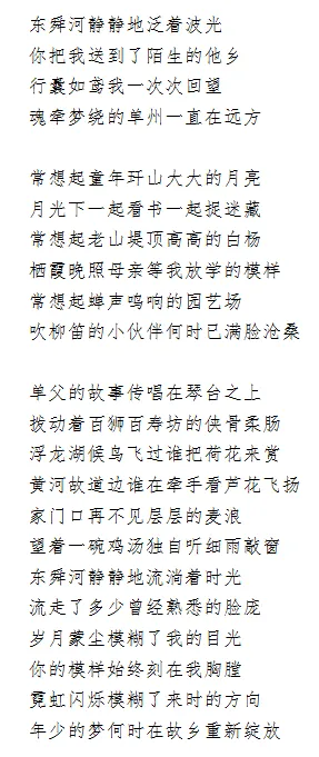 注:贾富彬的村庄离园艺场、张崮堆、东舜河都很近,歌曲中提到小时候经常去的这些地方,如今,这些地方已发生很大变化,歌词中表达的真实、亲切!