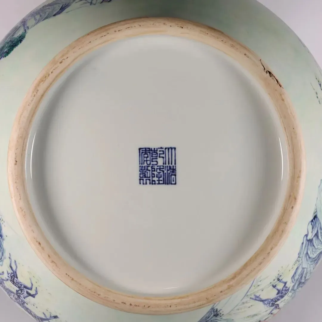 从工艺上看,这件百鹿尊融合了青花与斗彩两大绝技。青花发色浓艳青翠,采用“浙料”绘制,经高温烧成后色泽稳定;斗彩则以釉下青花为骨,釉上填以五彩,低温二次烧成,色彩层次丰富而不失清雅。画师需先在瓷胎上用青花精准勾勒出百鹿与山林的轮廓,再根据画面需要填施各色釉彩,每一处色彩的过渡都需精准把控,稍有差池便会前功尽弃。百鹿尊的烧制成功率极低,乾隆朝存世量不足十件,足见其珍贵。