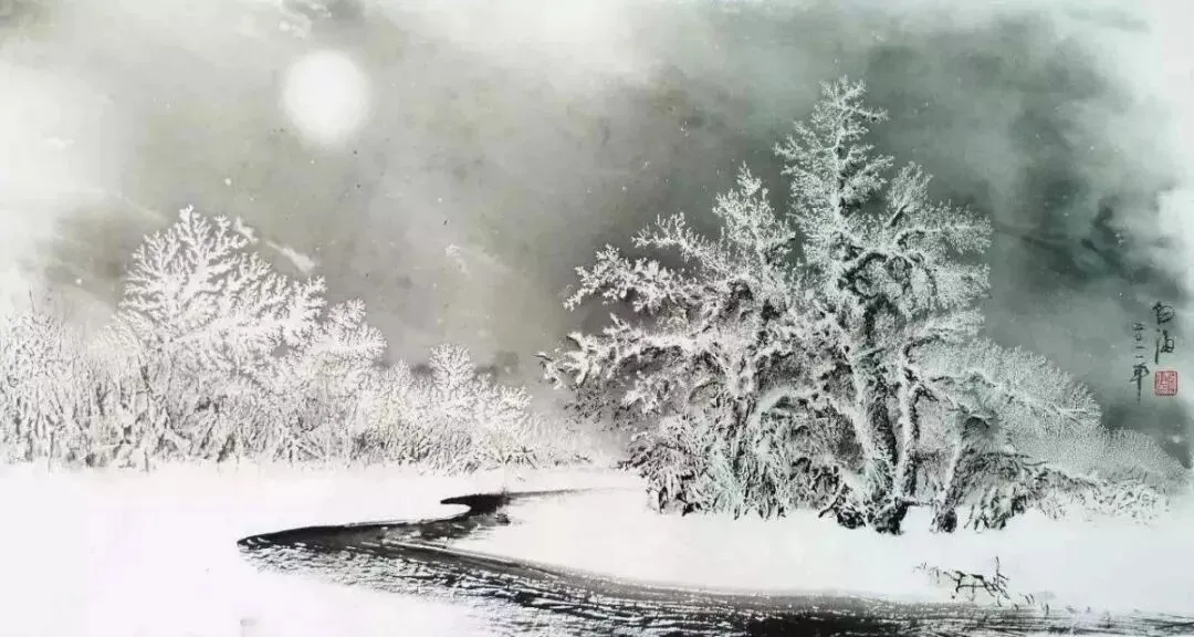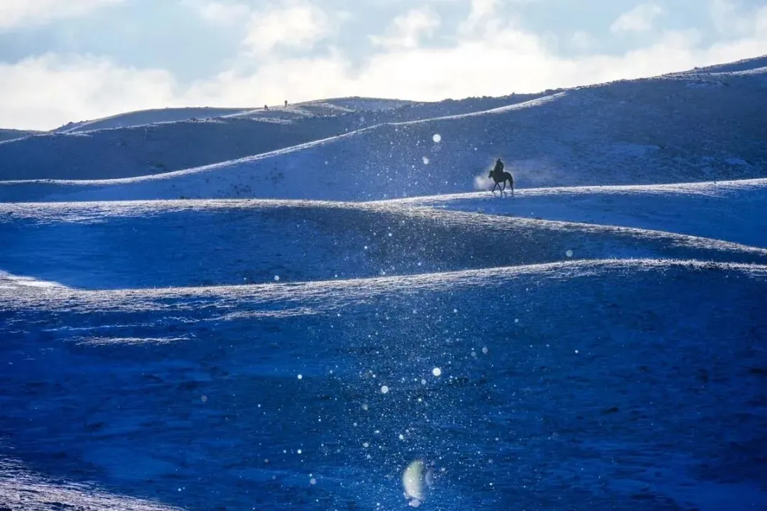 山路曲折已不见你的身影,雪地上只留下一行马蹄印迹。
