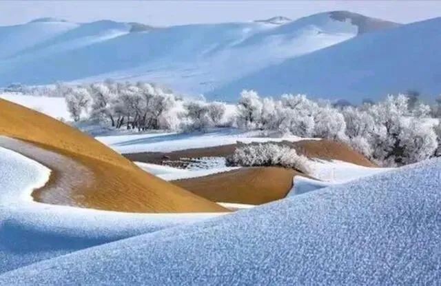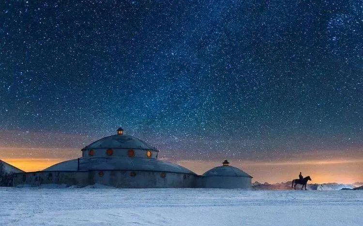 无边沙漠结着厚厚的冰,万里长空凝聚着惨淡愁云。
