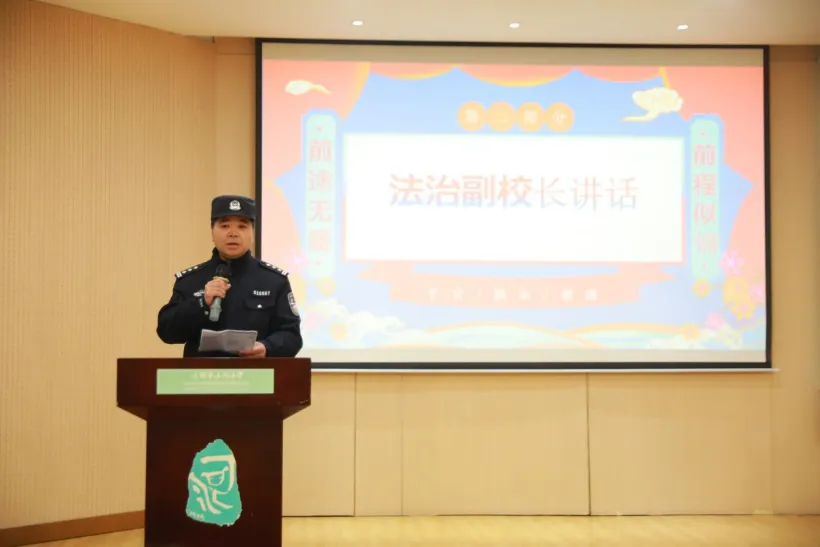 为进一步增强学生的安全与法治意识,学校特邀法治副校长石警官开展专题讲座,并结合寒假生活特点组织了专题安全教育。内容涵盖交通安全、居家安全、网络安全及自我保护等方面,为同学们平安度假筑牢思想防线。