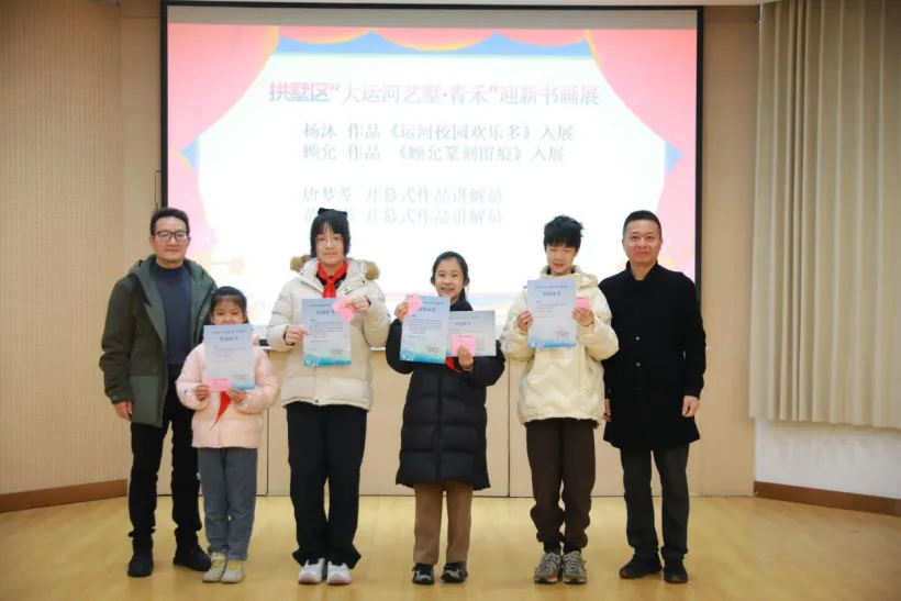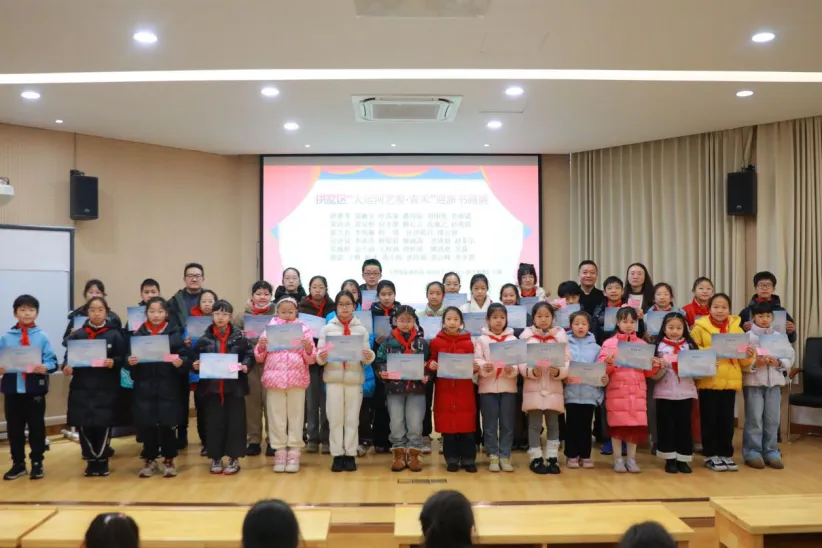 在拱墅区“大运河艺墅·青禾”迎新书画展中,唐梦苓、杨沐、顾允等多名同学的作品入选展出,其中黄安彤、唐梦苓同学担任开幕式讲解员,展现出良好的艺术素养与表达能力;章雨诺同学在2025年长三角及浙江省中小幼陶艺教育成果展中,均荣获小学组一等奖;