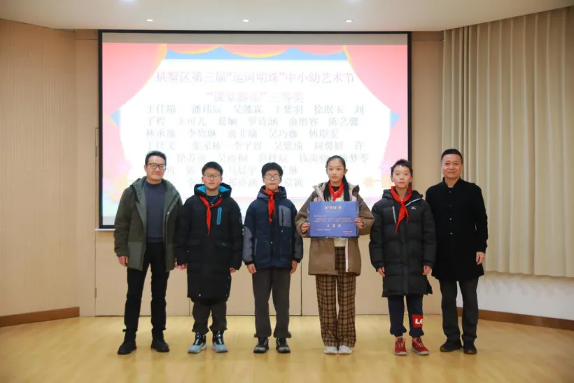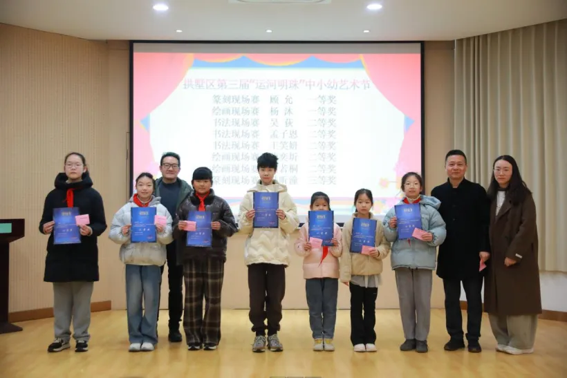 在拱墅区第三届“运河明珠”中小幼艺术节中,学校在篆刻、绘画、书法、戏曲、器乐、表演唱、班级合唱、广场集体舞等十余个项目中全面开花,共获得一等奖6项、二等奖9项、三等奖多项,充分彰显学校“五育并举”育人实践的扎实成效。
