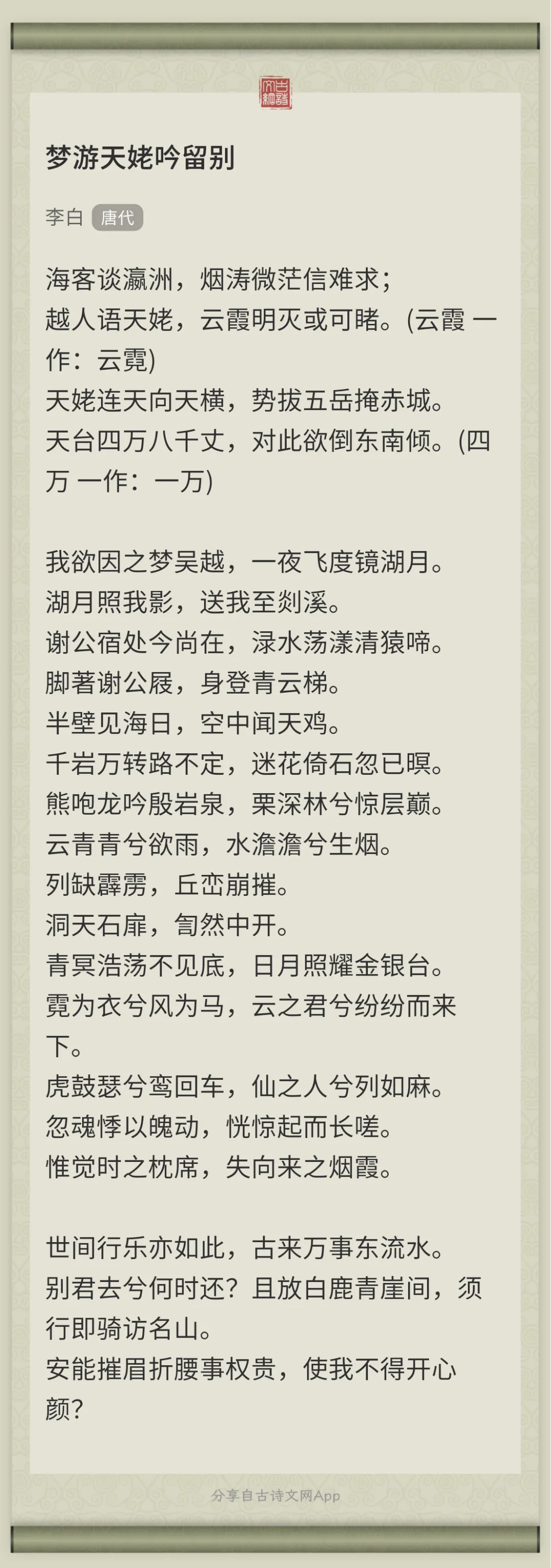 以神话、夸张、奇谲意象,写尽蜀道之险,暗喻仕途艰危。全诗如狂澜奔涌,是浪漫主义的巅峰。